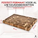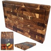 Planche à découper de très haute qualité en bois d'acacia de bout. Solide, parfaitement fini et repose fermement sur le plan de travail. Le coffret de luxe le rend complet.