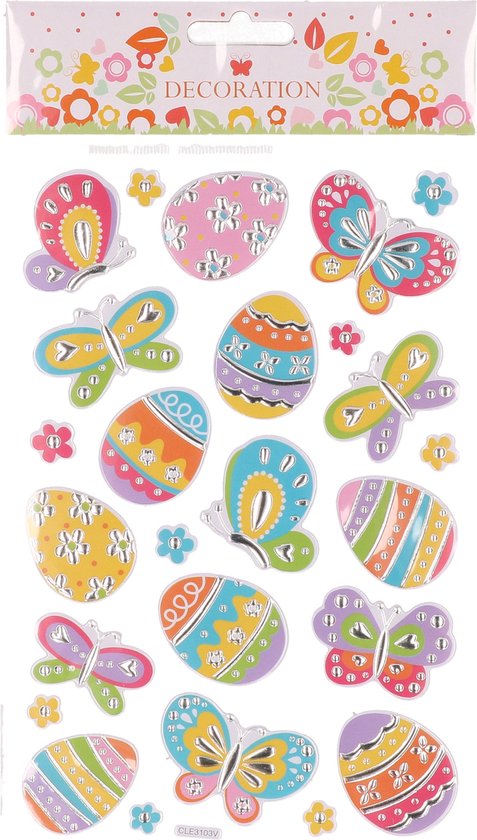 Planche d'autocollants avec des oeufs de Pâques et des papillons - 26 autocollants - thème de Pasen - fournitures d'artisanat