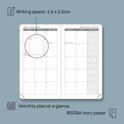 La couverture de cet agenda est en cuir PU souple, qui est non seulement élégant, mais également confortable à tenir en main. Les pages sont constituées de papier ivoire 80 GSM sans acide, agréable au toucher et écrivant à merveille. Ce papier vous permet d'écrire sans soucis aussi bien avec des stylos qu'avec des crayons, sans que l'encre ne coule à travers.