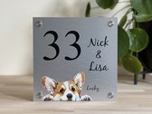 Plaque de porte d'entrée pour chien Norfolk Terrier 20x28 cm avec numéro de maison aspect inox et noir
