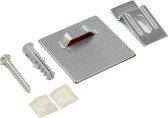 Les plaques de suspension sont fournies sous forme d'un ensemble complet, comprenant deux entretoises, un crochet mural, une cheville et une vis.