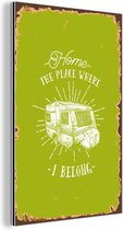 Plaque murale Métal - Décoration murale Métal - Vintage - Caravane - Vert - 20x20 cm - Dibond