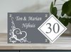 Plaque signalétique coeurs de porte avant élégants avec numéro de maison anthracite