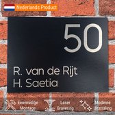 Plaque signalétique porte d'entrée Maison - Panneau - Nom et numéro de maison - 15 x 15 cm - Aluminium brossé - Numéro uniquement - Incl. Kit de montage + entretoises inox
