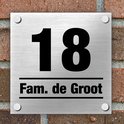Plaque signalétique porte d'entrée Maison - Signe - Nom et numéro de maison - 15 x 15 cm - Aluminium brossé - Carré - Incl. Kit de montage + entretoises inox