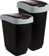 Rotho Twist Swing - Poubelle 25L avec couvercle à charnière - Collecteur de déchets de recyclage - Sans BPA - Zwart/ Bleu foncé