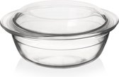 Belle marmite en verre. Vous pouvez vraiment faire beaucoup de temps avec ces marmites en verre Pyrex. Le couvercle peut également être utilisé comme assiette plate, par exemple. Bon aussi pour le micro-ondes.