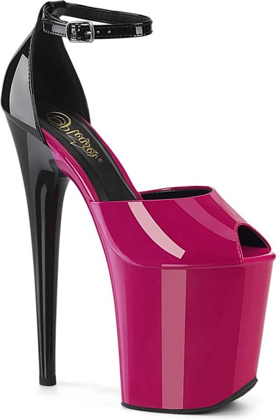 Pleaser. Heel de 8 "" (200 mm), plateforme de 4 "" (100 mm) sandales bicolores à bout ouvert et bride à la cheville à l'arrière