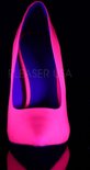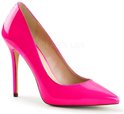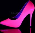 Pleaser. Escarpin rose fluo brillant avec nez pointu et talon aiguille. --- Matériel: polyuréthane