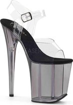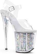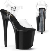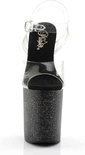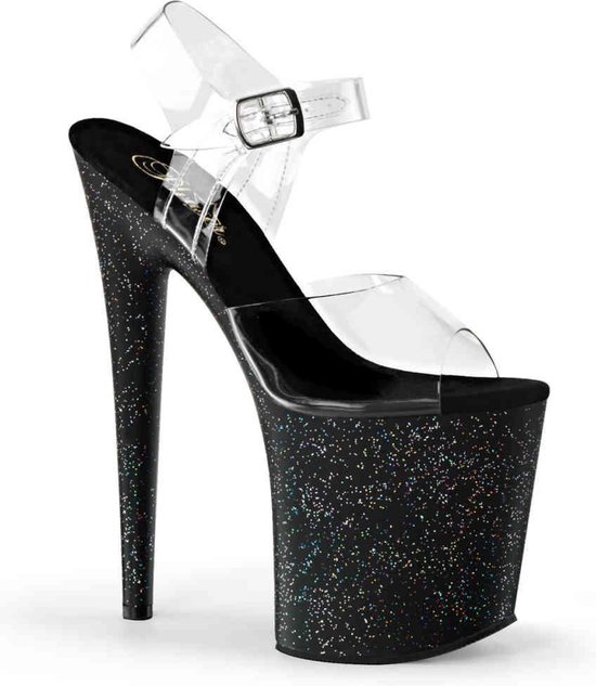 8 (20,3 cm) talon aiguille, 4 sandales à bride à la cheville (10,2 cm) avec mini paillettes irisées sur toute la plate-forme --- Matière: chlorure de polyvinyle