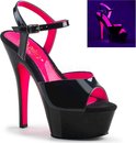 6 (15,25 cm) talon, 1 3/4 (4,5 cm) sandale à bride à la cheville à deux tons avec effet néon rose vif UV Blacklight --- Matériel: polyuréthane --- Pin up, chaussures de pole dance, danse exotique