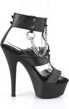 Pleaser. Talon 6 (152 mm), 1 3/4 (45 mm) Sandale plate à lanières en T avec anneaux et chaînes en métal Détail --- Matériau: polyuréthane
