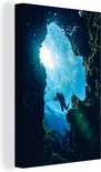 Plongeur dans une grotte marine 20x30 cm - petit - Tirage photo sur toile (Décoration murale salon / chambre) / Mer et plage