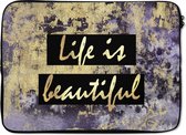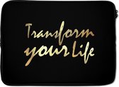 Cette housse pour ordinateur portable / housse pour ordinateur portable convient à tout ordinateur portable ou MacBook. Le manchon est fait d'un matériau doux et épais appelé néoprène, qui est un type de caoutchouc élastique. La housse est également équipée d'une double fermeture à glissière qui garantit que la housse est facile à ouvrir. Cela rend la housse pour ordinateur portable très pratique sur le chemin de l'école ou du travail!