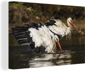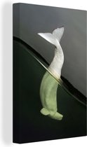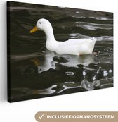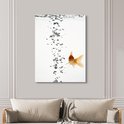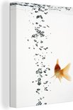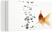 Poisson rouge avec des bulles d'air dans l'eau sur fond blanc toile 2cm 120x160 cm - Tirage photo sur toile (Décoration murale salon / chambre) XXL / Groot format!