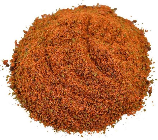 - Ingrédients : sel, paprika doux en poudre, granulés d'ail, pul biber / gros poivre, acide citrique (E330), sucre, persil haché