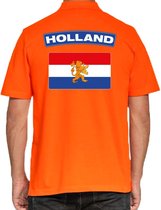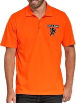 Polo Kingsday Holland avec gros lion orange pour homme. Ce polo orange montre la Hollande avec le lion en dessous. Ce t-shirt polo est fait de 100% coton, 180 grammes.