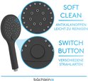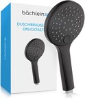 Pommeau de douche universel Bächlein - Pommeau de douche avec 3 types de jets, facile à changer grâce à un bouton poussoir pratique - Pommeau de douche rond noir mat - Douchette à main avec dimensions de raccordement standard G 1/2"