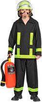 Déguisements de pompier. Robe noire avec fermeture éclair et rayures jaune fluo.