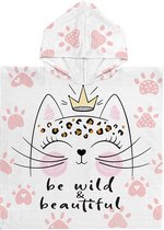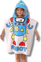 Ce poncho de plage a une taille de 120 x 60 cm de long. Le poncho a une capuche au milieu, qu'ils peuvent passer par-dessus leur tête. Le poncho est en polyester
