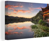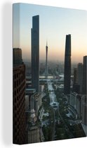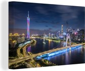 Pont de Guangzhou au coucher du soleil 50x50 cm - Tirage photo sur toile (Décoration murale salon / chambre) / Villes asiatiques Peintures sur toile