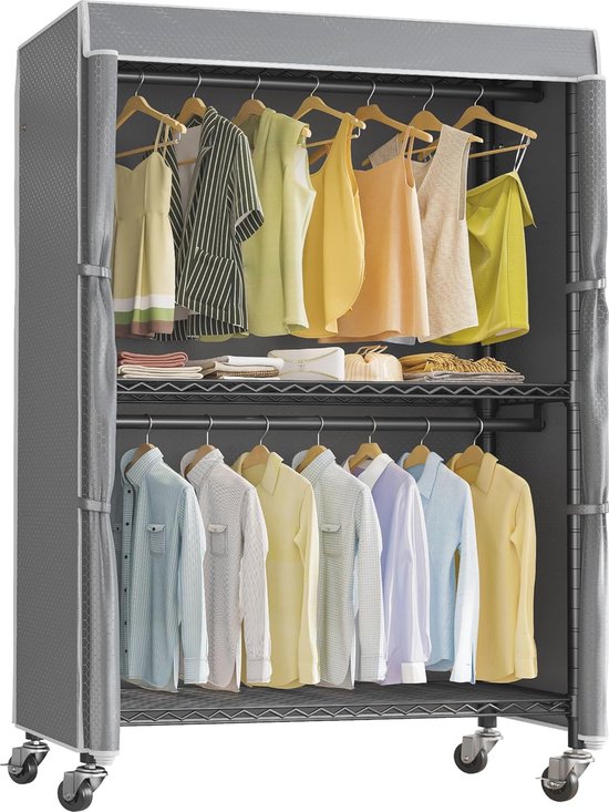 Portant à vêtements roulant robuste avec couvercle – Système de rangement réglable et autonome pour Vêtements et Chaussures pour femmes – Zwart