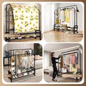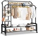 Portant à vêtements, tringle à vêtements, portant à roulettes, tringle à vêtements roulante, portant à vêtements stable, portant à vêtements noir, portant à roulettes avec deux tringles à vêtements