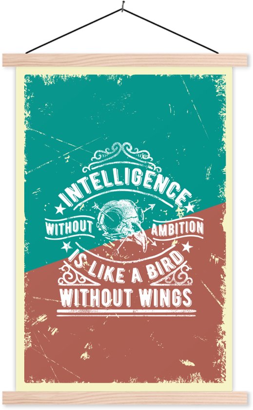 Porte-affiche avec affiche 40x60 cm - Affiche scolaire - Vintage - Crâne - Design - Affiche textile - Lattes vierges - Cadeau Vaderdag - Cadeau - Cadeau pour lui - Conseil - Homme