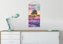 Porte-affiche avec affiche 60x120 cm - Affiche scolaire - Lavande - Peinture - Vogels - Arbres - Violet - Affiche textile - Lattes vierges