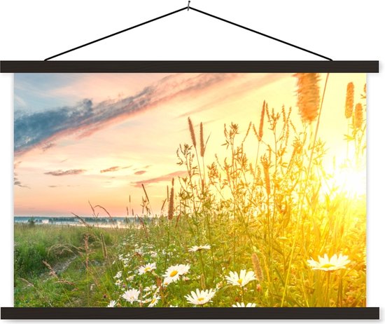 Porte-affiche avec affiche 60x40 cm - Affiche scolaire - Fleurs - Marguerite - Nature - Soleil - Horizon - Affiche textile - Lattes noires
