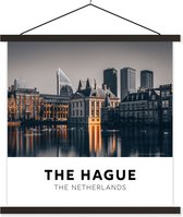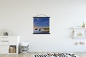 Porte-affiche avec affiche 60x60 cm - Affiche scolaire - Bateaux au coucher du soleil aux Nederland - Affiche textile - Lattes noires