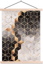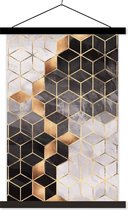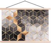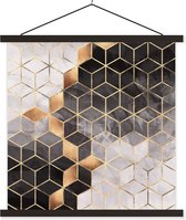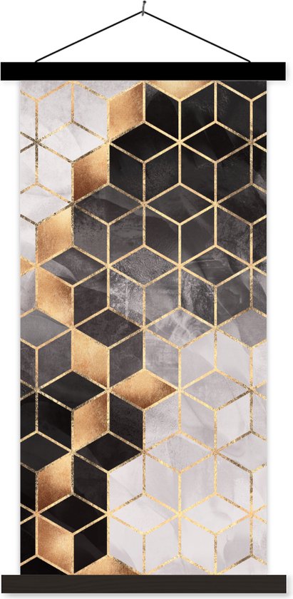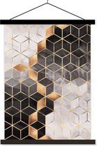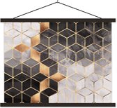 Porte-affiche avec affiche - Affiche scolaire - Abstrait - Cube - Or - Motifs - Zwart - Wit - 40x80 cm - Lattes noires