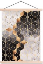Affiche textile - Abstrait - Cube - Goud - Motifs - Zwart - Wit - Porte affiche