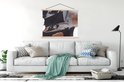 - L' textielposter est disponible avec des lattes de bois noires et blanches