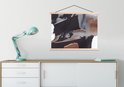 L'affiche textile est imprimée sur une toile solide avec deux lattes de bois vierges en haut et en bas. Une ficelle est attachée aux lattes, de sorte que la commission scolaire puisse être facilement suspendue. Les affiches textiles de TextilePosters sont disponibles dans plus de 25 tailles différentes. En plus des lattes en bois vierges, les affiches textiles sont également disponibles avec des lattes noires ou blanches.