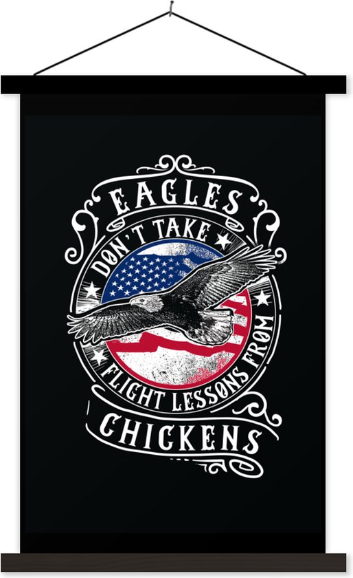 Porte-affiche avec affiche - Affiche scolaire - Aigle - Drapeau - Rétro - Citation - 60x90 cm - Lattes noires