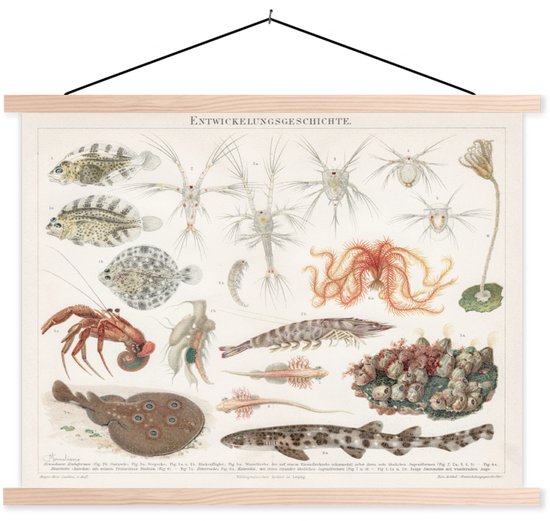 Porte-affiche avec affiche - Affiche scolaire - Animaux aquatiques - Vintage - Illustration - 150x113 cm - Lattes noires
