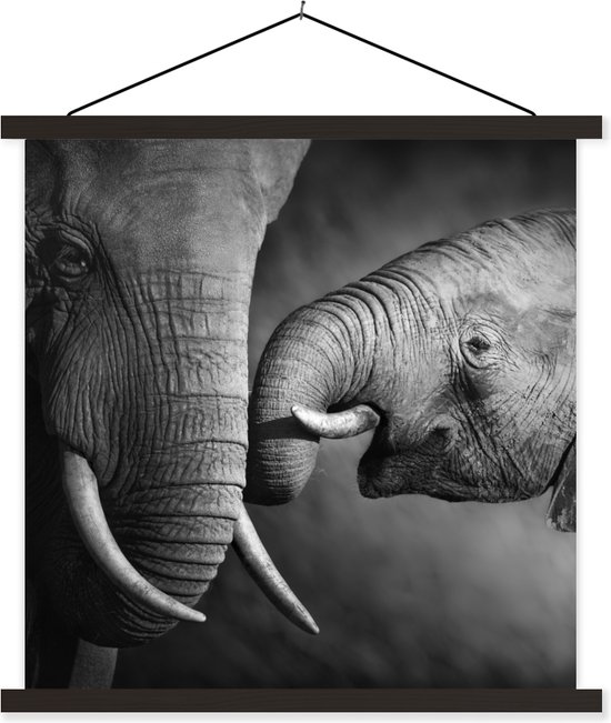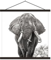 Affiche textile - Animaux sauvages - Éléphant - Zwart - Wit - Portrait - Porte affiche