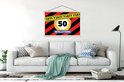 Porte-affiche avec affiche - Affiche scolaire - Anniversaire - Décoration 50 ans - Anniversaire - 150x100 cm - Lattes vierges
