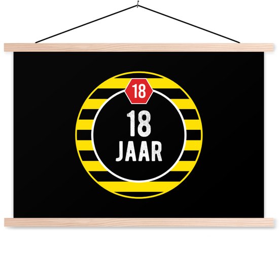 Porte-affiche avec affiche - Affiche scolaire - Anniversaire - Zwart - 18 ans - 120x80 cm - Lattes vierges