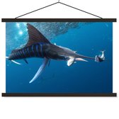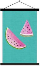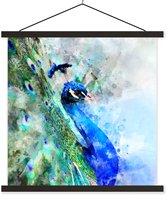 Porte-affiche avec affiche - Affiche scolaire - Aquarelle - Paon - Blauw - 60x40 cm - Lattes noires
