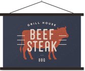 Porte-affiche avec affiche - Affiche scolaire - BBQ - Mancave - Steak - 40x60 cm - Lattes noires