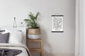 - L' textielposter est disponible avec des lattes de bois noires et blanches