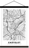 Porte-affiche avec affiche - Affiche scolaire - België - Châtelet - Plan de ville - Carte - Zwart Wit - Plan d'étage - 40x60 cm - Lattes noires