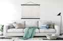 - L' textielposter est disponible avec des lattes de bois noires et blanches