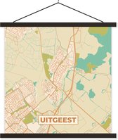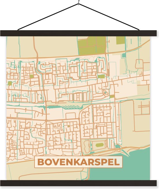 Porte-affiche avec affiche - Affiche scolaire - Bovenkarspel - Carte - Plan de la ville - Plan d'étage - Vintage - 90x90 cm - Lattes noires - Plan d'étage