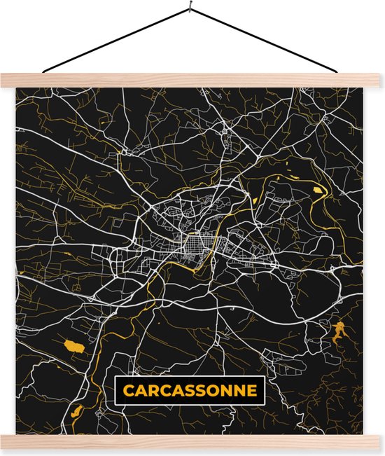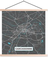 Porte-affiche avec affiche - Affiche scolaire - Carcassonne - Carte - Plan de la ville - France - Carte - 90x90 cm - lattes vierges