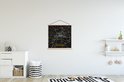 L'affiche textile est imprimée sur une toile solide avec deux lattes de bois vierges en haut et en bas. Une ficelle est attachée aux lattes, de sorte que la commission scolaire puisse être facilement suspendue. Les affiches textiles de TextilePosters sont disponibles dans plus de 25 tailles différentes. En plus des lattes en bois vierges, les affiches textiles sont également disponibles avec des lattes noires ou blanches.