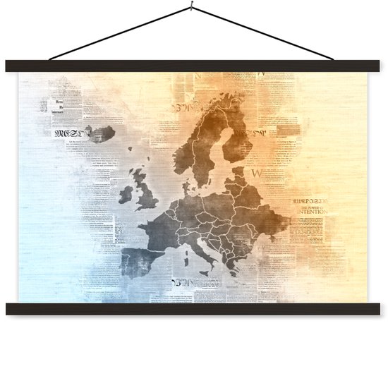Porte-affiche avec affiche - Affiche scolaire - Carte - Europe - Journal - 60x40 cm - Lattes noires