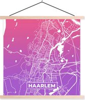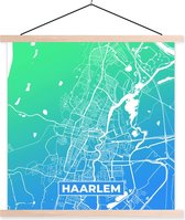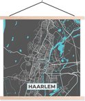 Porte-affiche avec affiche - Affiche scolaire - Carte - Haarlem - Grijs - Blauw - 120x120 cm - Lattes vierges